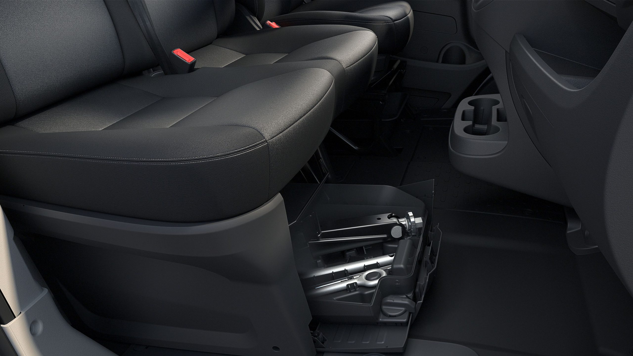 Sosem lehet elég hely. A Proace Max biztonságos és védett ülés alatti tárolórekeszei tökéletesek a mindennapi tárgyak számára.